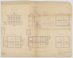 Drager: papier Techniek: pen, opgehoogd met aquarel, aangehechte kalk met potloodschets van voorgevel Afmetingen (h x b in mm): 618 x 495 mm Schaal: 1/100