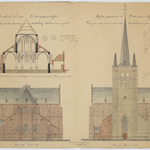 Opschrift: Parochiale kerk van St. Amandus te Gheel. Ontwerp tot de uitwendige herstelling. Eglise paroissiale de St. Amand à Gheel. Projet de restauration extérieure. Omschrijving plan: opstand voorgevel, opstand achtergevel, dwarsdoorsnede naar het koor Datum KCML: 11/05/1907 Archiefnummer: A0630