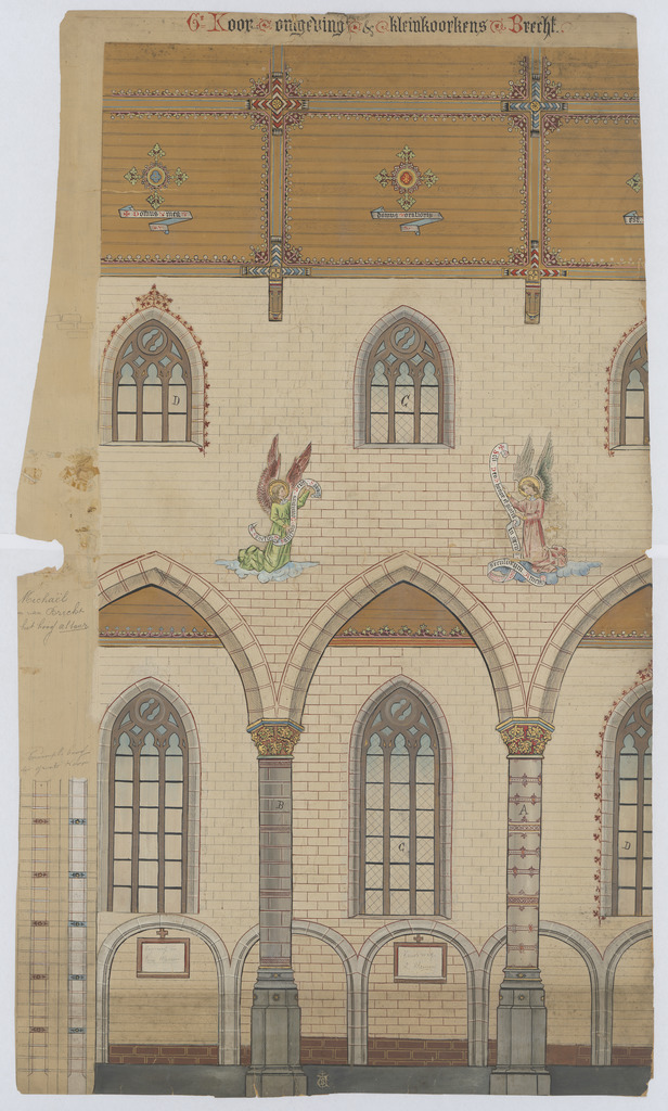 Opschrift: Kooromgeving en kleinkoorkens Brecht. Omschrijving plan: aanzicht interieur Datum KCML: deze informatie wordt niet vermeld op het archiefstuk Archiefnummer: A0600