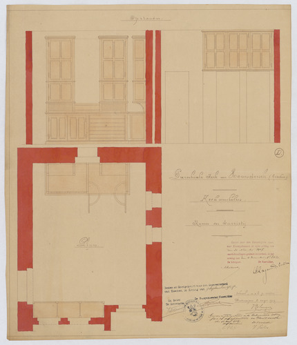 Opschrift: Parochiale kerk van Hoorendonck (Esschen). Kerkmeubelen. Kassen der sacristij. Omschrijving plan: opstand en plattegrond sacristiekasten Datum KCML: 30/11/1907 Archiefnummer: A0623