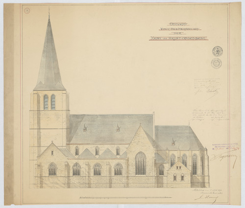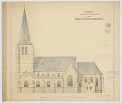 Opschrift: Ontwerp voor het herstellen der kerk van Heyst-op-den-berg. Omschrijving plan: opstand zijgevel 1 Datum KCML: 22/05/1897 Archiefnummer: A0717