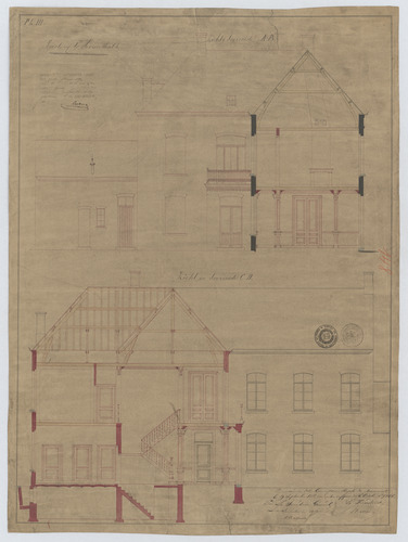 Opschrift: Pastorij te Herenthals. Omschrijving plan: opstand voorgevel, opstand zijgevel, doorsneden Datum KCML: 29/09/1888 Archiefnummer: A0751