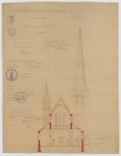 Drager: papier Techniek: kalkafdruk, opgehoogd met aquarel Afmetingen (h x b in mm): 387 x 497 mm Schaal: 1/100