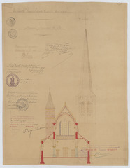Opschrift: Gemeente Morckhoven. Provincie Antwerpen. Dwarsche Doorsnede A.B. Omschrijving plan: dwarsdoorsnede, dwarsdoorsnede naar het portaal Datum KCML: 22/06/1907 Archiefnummer: A0759