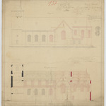 Opschrift: Kerk te Ramsel. Omschrijving plan: opstand zijgevel 1, langsdoorsnede Datum KCML: 16/04/1886 Archiefnummer: A0780