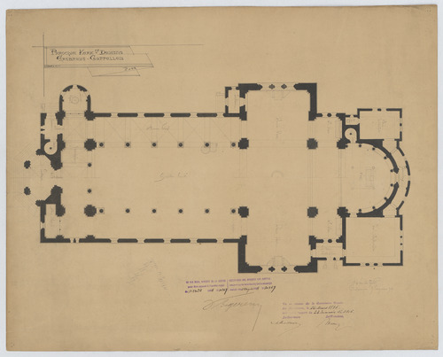 Opschrift: Parochie Kerk St. Deonisius Ertbrant-Cappellen. Omschrijving plan: plattegrond niveau 0 Datum KCML: 16/03/1895 Archiefnummer: A0833