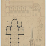 Opschrift: Ontwerp voor het bouwen eene nieuwe kerk te Achterbroeck. Omschrijving plan: plattegrond niveau 0, opstand voorgevel, langdsoorsnede Datum KCML: 14/01/1871 Archiefnummer: A0817
