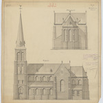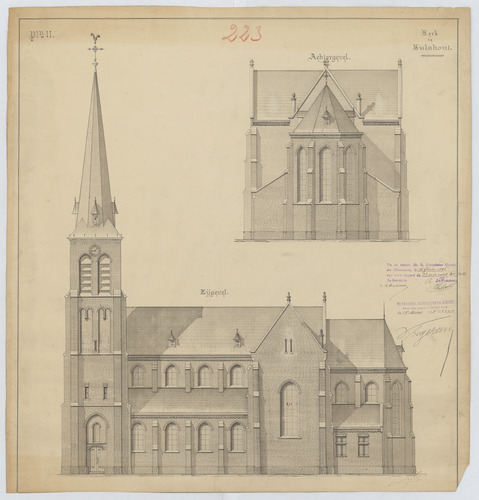 Opschrift: Kerk te Hulshout. Omschrijving plan: opstand achtergevel, opstand zijgevel Datum KCML: 16/02/1895 Archiefnummer: A0808