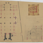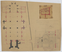 Opschrift: Voorlopig ontwerp voor het bouwen eener kerk te Veerle. Omschrijving plan: plattegrond niveau 0, plattegrond niveau -1, dwarsdoorsnede naar het koor Datum KCML: 8 /03/1913 Archiefnummer: A0850