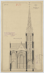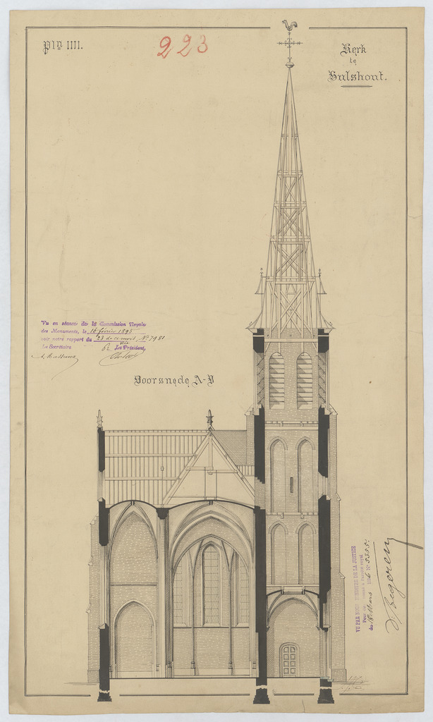 Opschrift: Kerk te Hulshout. Omschrijving plan: dwarsdoorsnede, doorsnede naar het koor Datum KCML: 16/02/1895 Archiefnummer: A0809