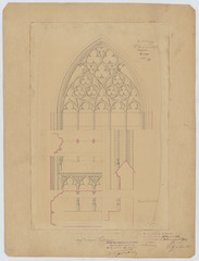 Opschrift: Herstelling St.-Gummaruskerk Lier. Omschrijving plan: aanzicht en doorsnede venster Datum KCML: 19/08/1893 Archiefnummer: A0873