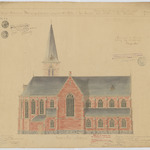 Opschrift: Provincie Antwerpen. Bouwen eener Kerk voor de parochie van St.-Nikolaas te Meerlaer. Omschrijving plan: opstand N-gevel Datum KCML: 16/10/1909 Archiefnummer: A0865