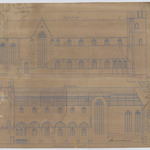 Opschrift: Ontwerp der vergrootings- en herstellingswerken der kerk van Westmalle. Omschrijving plan: opstand zijgevel 1, langsdoorsnede Datum KCML: 16/06/1900 Archiefnummer: A0914