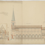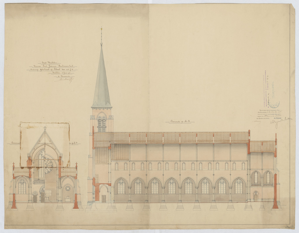 Opschrift: Stad Mechelen. Nieuwe Sint-Joannes-Berchmanskerk. Omschrijving plan: langsdoorsnede, dwarsdoorsnede Datum KCML: 21/11/1908 Archiefnummer: A0960