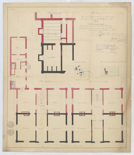 Drager: papier Techniek: kalkafdruk, opgehoogd met aquarel Afmetingen (h x b in mm): 547 x 633 mm Schaal: 1/50, 1/2500