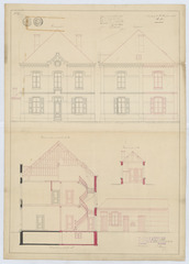 Opschrift: Pastorij te Milleghem onder Moll. Omschrijving plan: opstand voorgevel, opstand zijgevel, doorsneden Datum KCML: 12/05/1894 Archiefnummer: A1045