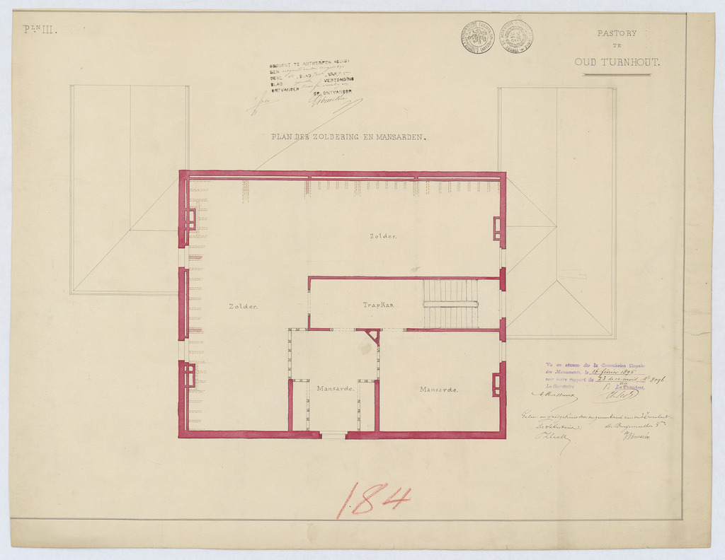 Opschrift: Pastory te Oud-Turnhout. Omschrijving plan: plattegrond niveau 2 Datum KCML: 16/02/1895 Archiefnummer: A1104