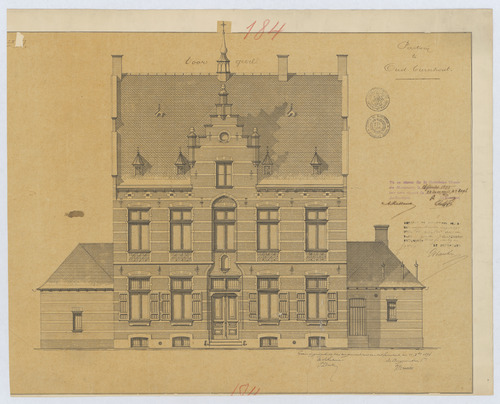 Opschrift: Pastory te Oud-Turnhout. Omschrijving plan: opstand voorgevel Datum KCML: 16/02/1895 Archiefnummer: A1105