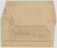 Opschrift: Ontwerp voor het bouwen eener kerk te Peulis-Rijmenam. Omschrijving plan: opstand zijgevel 1 Datum KCML: 9 /09/1899 Archiefnummer: A1130