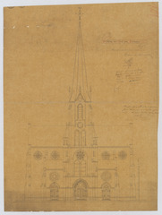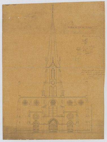 Opschrift: Ontwerp der Kerk van Terhaegen. Omschrijving plan: opstand voorgevel Datum KCML: 7 /09/1878 Archiefnummer: A1207
