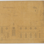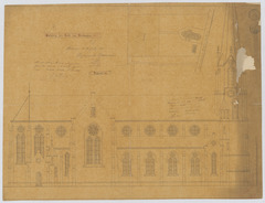 Opschrift: Ontwerp der Kerk van Terhaegen. Omschrijving plan: opstand zijgevel 1, situatieplan Datum KCML: 7 /09/1878 Archiefnummer: A1208