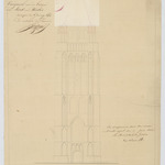 Opschrift: Voorgevel van den toren der kerk van Weelde. Omschrijving plan: opstand voorgevel, opstand toren Datum KCML: 11/06/1842 Archiefnummer: A1171