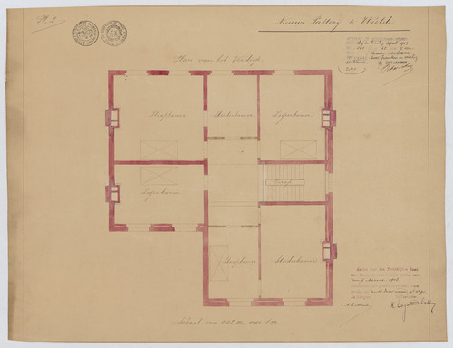 Drager: papier Techniek: kalkafdruk, opgehoogd met aquarel Afmetingen (h x b in mm): 375 x 481 mm Schaal: 1/50