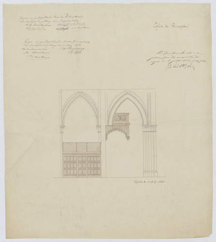 Opschrift: Eglise de Rumpst. Omschrijving plan: zijaanzicht doksaal en portaal Datum KCML: deze informatie wordt niet vermeld op het archiefstuk Archiefnummer: A1198