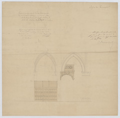 Opschrift: Eglise de Rumpst. Omschrijving plan: zijaanzicht doksaal en portaal Datum KCML: deze informatie wordt niet vermeld op het archiefstuk Archiefnummer: A1199