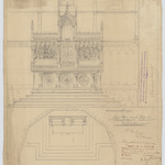 Opschrift: Hoog Altaar voor de Kerk der Deuzeldstraat onder Schooten. Omschrijving plan: plattegrond en opstand hoofdaltaar Datum KCML: 14/07/1900 Archiefnummer: A1227