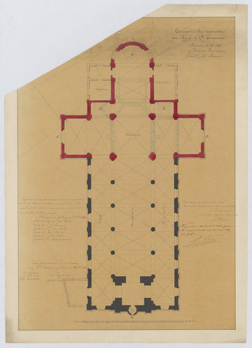 Opschrift: Ontwerp tot het vergrooten der Kerk te St.-Amands. Omschrijving plan: plattegrond niveau 0 Datum KCML: 15/12/1866 Archiefnummer: A1232