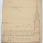 Opschrift: Ontwerp voor het vergrooten der kerk van O.L.V. Waver. Omschrijving plan: langsdoorsnede Datum KCML: 3 /10/1908 Archiefnummer: A1250