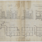 Opschrift: Ontwerp voor het bouwen van eene nieuwe Pastorij te O.L.V. Waver. Omschrijving plan: plattegrond niveau 0, situatieplan, plattegrond niveau -1, plattegrond niveau 1 opstand voorgevel opstand zijgevel dwarsdoorsnede Datum KCML: 31/07/1909 Archiefnummer: A1253