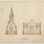 Opschrift: Bouwen eener Kerk op het gehucht Heultje onder Westerlo. Omschrijving plan: dwarsdoorsnede, dwarsdoorsnede naar koor, dwarsdoorsnede naar portaal Datum KCML: 22/02/1896 Archiefnummer: A1282