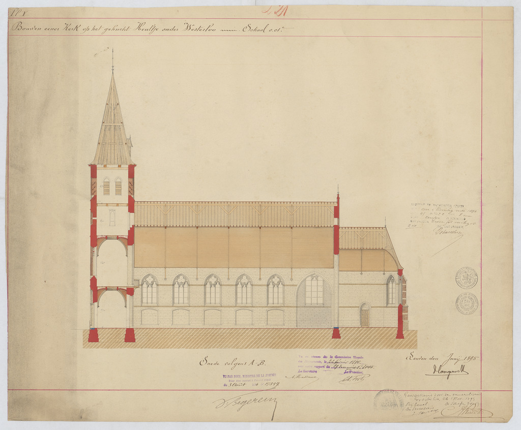 Opschrift: Bouwen eener Kerk op het gehucht Heultje onder Westerlo. Omschrijving plan: langsdoorsnede Datum KCML: 22/02/1896 Archiefnummer: A1283