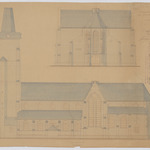 Opschrift: Kerk van Wuestwezel. Bestaande toestand. Omschrijving plan: opstand achtergevel, opstand zijgevel rechts Datum KCML: 17/03/1900 Archiefnummer: A1317