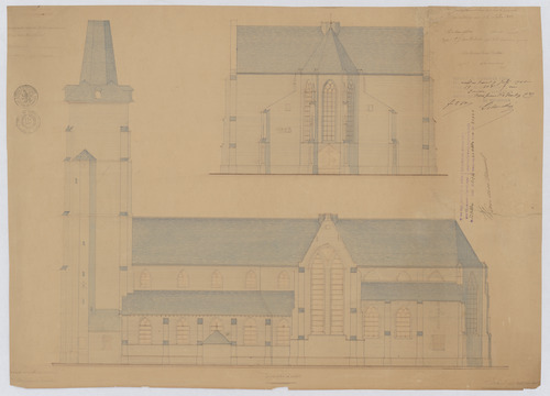 Opschrift: Kerk van Wuestwezel. Bestaande toestand. Omschrijving plan: opstand achtergevel, opstand zijgevel rechts Datum KCML: 17/03/1900 Archiefnummer: A1317