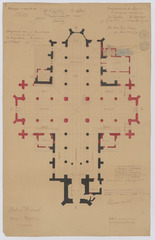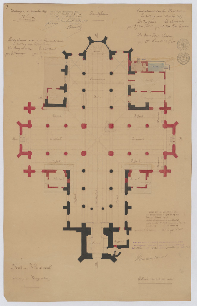 Opschrift: Kerk van Wuestwezel. Ontwerp der Vergrooting. Omschrijving plan: plattegrond niveau 0 (aangepast ontwerp) Datum KCML: 17/03/1900 Archiefnummer: A1320_01