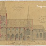 Opschrift: Flandre Orientale. Eglise paroissiale de Burght. Coupe longitudinale. Omschrijving plan: langsdoorsnede Datum KCML: 8 /06/1887 Archiefnummer: A1386