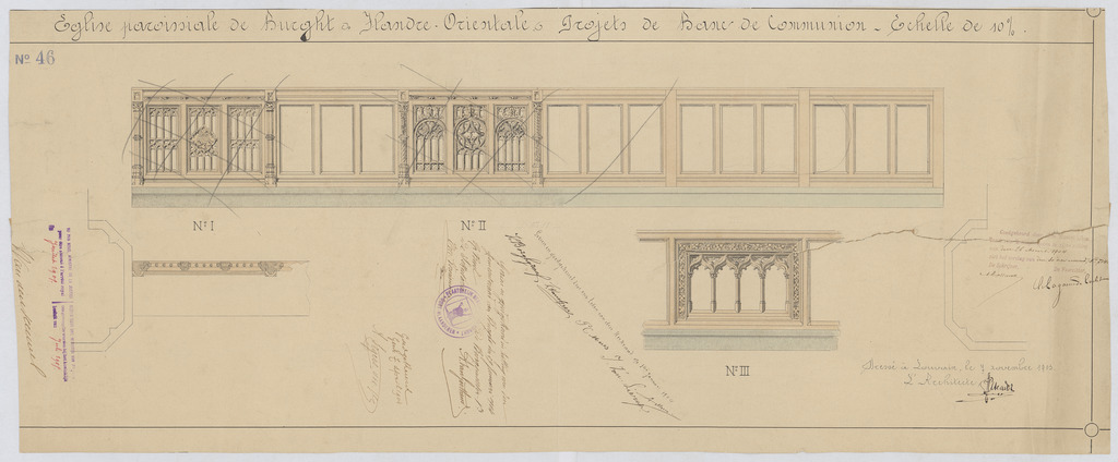 Opschrift: Flandre Orientale. Eglise paroissiale de Burght. Projet de banc de communion. Omschrijving plan: plattegrond en aanzicht communiebank Datum KCML: 26/03/1904 Archiefnummer: A1394