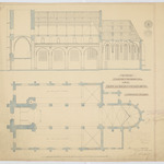 Opschrift: Ontwerp voor het herstellen der kerk van Heyst-op-den-berg. Omschrijving plan: plattegrond niveau 0, langsdoorsnede Datum KCML: 22/05/1897 Archiefnummer: A0720