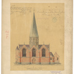 Opschrift: Provincie West-Vlaanderen. Parochiale Kerk van St.Arnoldus te Tieghem. Ontwerp tot herstelling. Omschrijving plan: opstand voorgevel Datum KCML: 14/05/1892 Archiefnummer: W0020