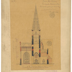 Opschrift: Provincie West-Vlaanderen. Gemeente Waermaerde, Ontwerp tot vergrooting en herstelling der parochiale kerk. Omschrijving plan: dwarsdoorsnede (aangepast ontwerp) Datum KCML: 11/03/1899 Archiefnummer: W0095_02