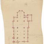 Opschrift: Ontwerp eener nieuwe kerk te kerkhove provintie westvlaenderen arrondissement Kortrijk Omschrijving plan: plattegrond niveau 0 Datum KCML: 19/01/1864 Archiefnummer: W0067