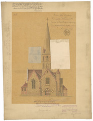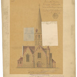 Opschrift: Provincie West-Vlaanderen. Gemeente Waermaerde, Ontwerp tot herstelling en vergrooting der parochiale kerk. Omschrijving plan: opstand voorgevel Datum KCML: 11/03/1899 Archiefnummer: W0090_02