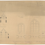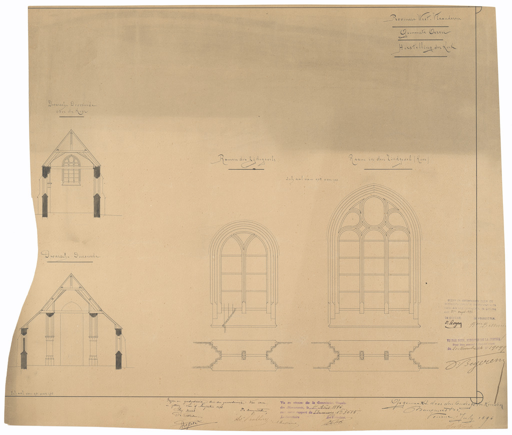 Opschrift: Provincie West-Vlaanderen. Gemeente Oeren. Herstelling der Kerk. Omschrijving plan: dwarsdoorsneden, plannen ramen Datum KCML: 01/08/1896 Archiefnummer: W0014
