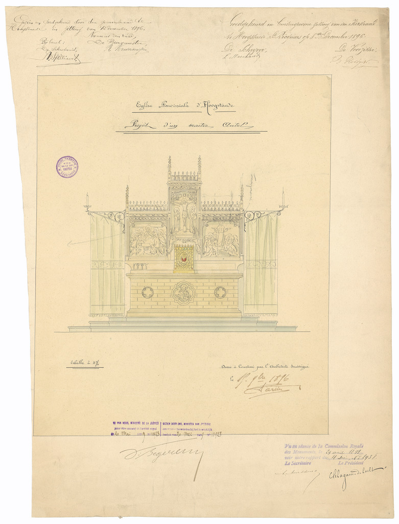 Opschrift: Eglise paroissiale d'Hoogstaede. Projet d'un maitre autel. Omschrijving plan: ontwerp hoogaltaar Datum KCML: 29/04/1899 Archiefnummer: W0013