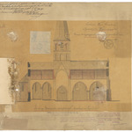 Opschrift: Provincie West-Vlaanderen. Gemeente Waermaerde, Ontwerp tot vergrooting en herstelling der parochiale kerk. Omschrijving plan: langsdoorsnede Datum KCML: 11/03/1899 Archiefnummer: W0097_02