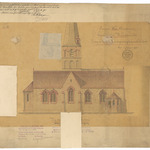 Opschrift: Provincie West-Vlaanderen. Gemeente Waermaerde, Ontwerp tot herstelling en vergrooting der parochiale kerk. Omschrijving plan: opstand N-gevel Datum KCML: 11/03/1899 Archiefnummer: W0091_03