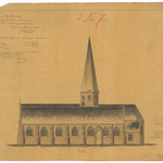 Opschrift: West-Vlaanderen. Arrondissement Thielt - Gemeente Coolscamp. Ontwerp tot het herstellen der Parochiale Kerk. Omschrijving plan: opstand zijgevel 1 Datum KCML: 24/06/1893 Archiefnummer: W0044